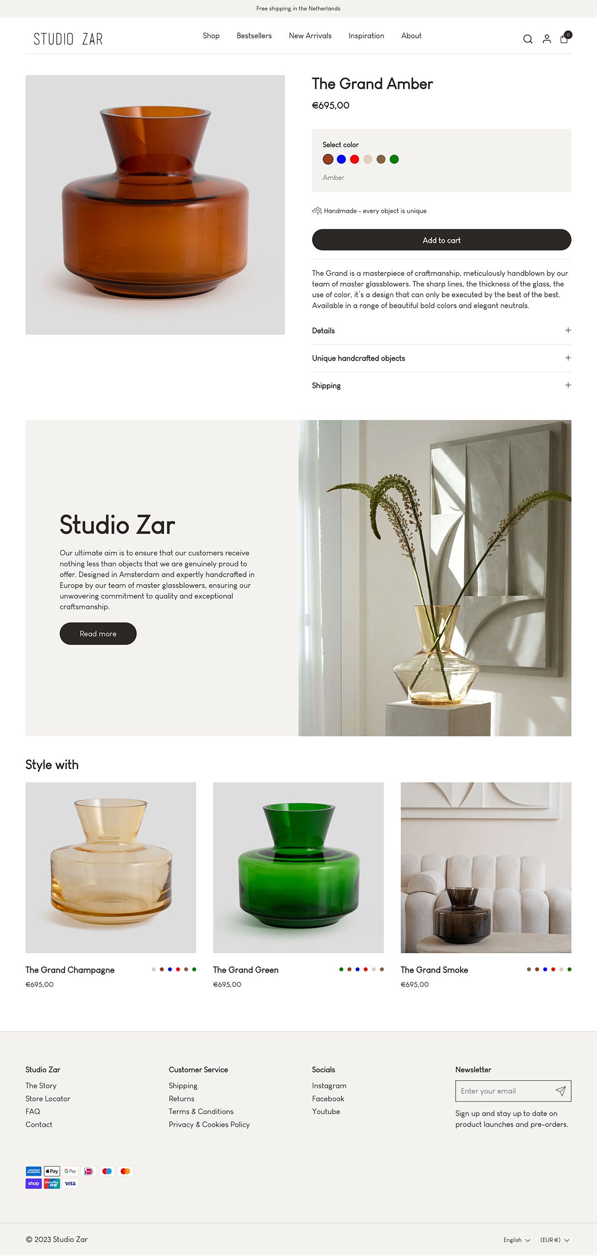 Traditioneel vakmanschap staat bij Studio Zar centraal. Studio Zar is gespecialiseerd in het maken van unieke glazen objecten. Het proces achter de glazen objecten van Studio Zar is een betoverende dans van warmte, vaardigheid en creativiteit.