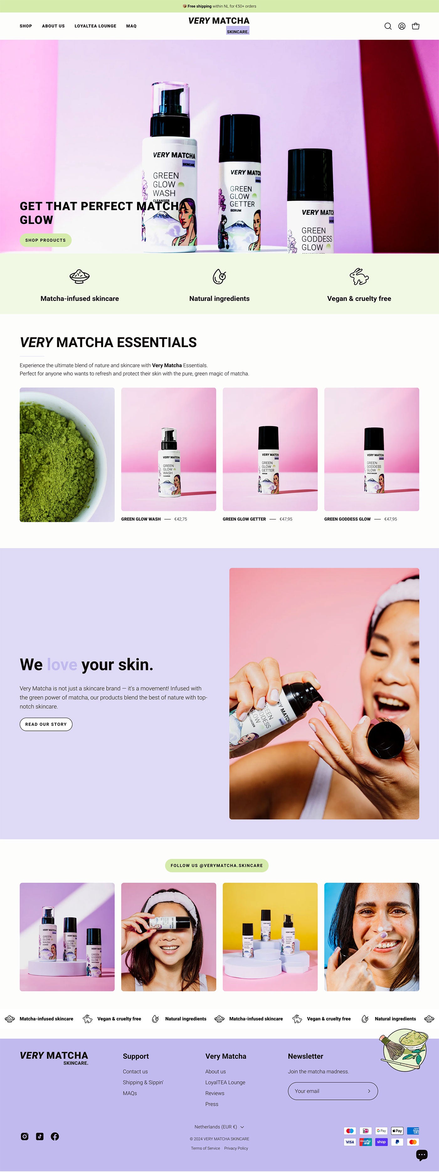 We hebben met trots gewerkt aan de webshop voor VERY MATCHA, een innovatief skincare merk dat de kracht van matcha combineert met hoogwaardige, natuurlijke ingrediënten. Het merk heeft een speelse, maar serieuze benadering van cruelty-free huidverzorging. Ontdek de magie van matcha met de nieuwe skincare lijn.